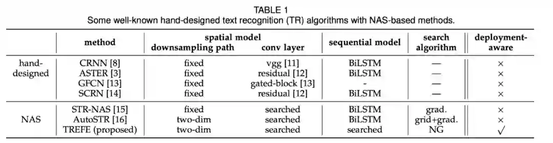 特征提取器在 TR 中发挥着关键的作用,并且占据着大量的数据计算和存储开销。但由于手动调参的成本较高,因此对于特征提取器的结构个性化方面探索较少。现有方法往往直接使用起初为其他任务设计的 CNN 和 RNN 网络(如 TABLE 1),包括用于图像分类的 ResNet 和用于机器翻译的 BiLSTM,并没有针对 TR 任务进行调优。