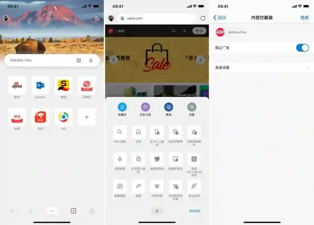 到了 iOS 上,新版 Edge 依然非常好。相比起 Chrome,我反而觉得 Edge 更适合被设置为手机默认浏览器。首先,Chrome 移动版有的基础功能,Edge 也一应俱全,而 Edge 甚至还内置了 AdBlock Plus 用于屏蔽广告。