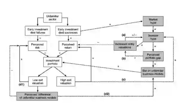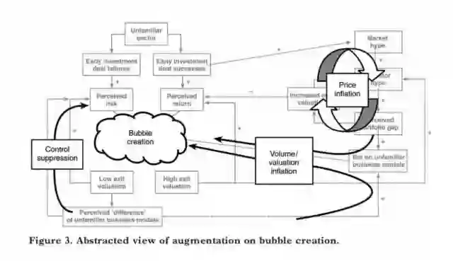 这张图概括了泡沫期投资人的认知模型。这张图左侧是投资人的微观行为,右侧则是市场趋势。