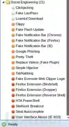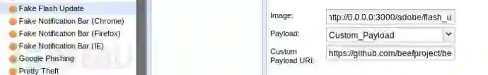 在beef的这一栏目,像Chrome,Firefox的Bar,还有Fake Flash Update这些就符合需要,