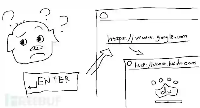 标签伪造URL,点进去看似谷歌的域名,会跑到”百度”上去