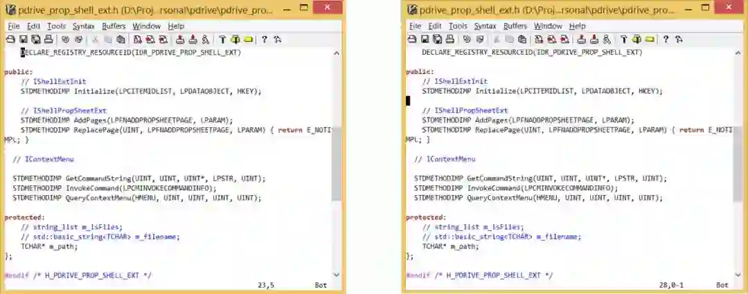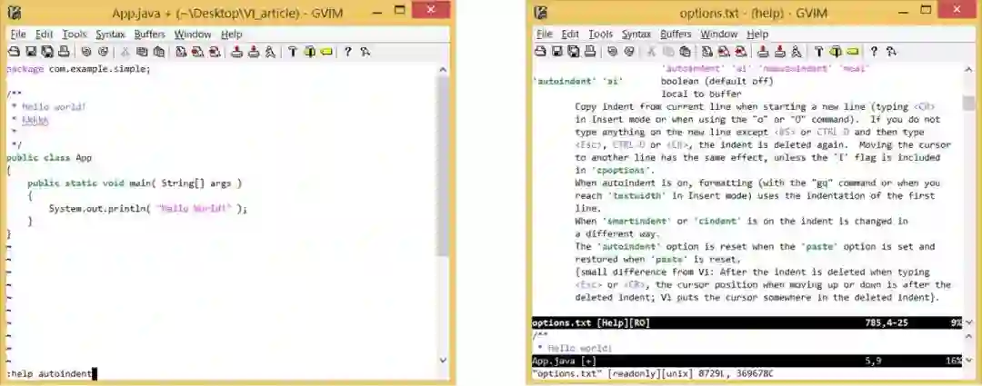 注意:Vim 具有语言感知功能,且其默认设置可以基于文件中的编程语言来改变配置以提高效率。有许多默认的配置选项,包括 axs cindent,cinoptions,indentexpr 等,没有在这里说明。 syn 是一个非常有用的命令,用于设置文件的语法以更改显示模式。