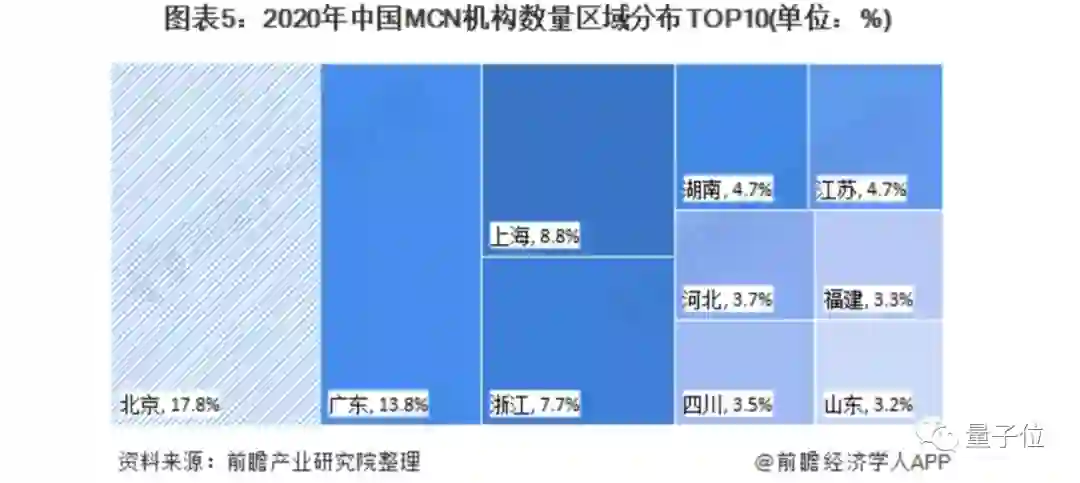 根据前瞻产业研究院统计,截至2020年湖南MCN机构数量占全国4.7%。