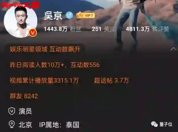 例如“人在泰国,正在拍戏”的吴京,也逃不过IP属地展示(doge):