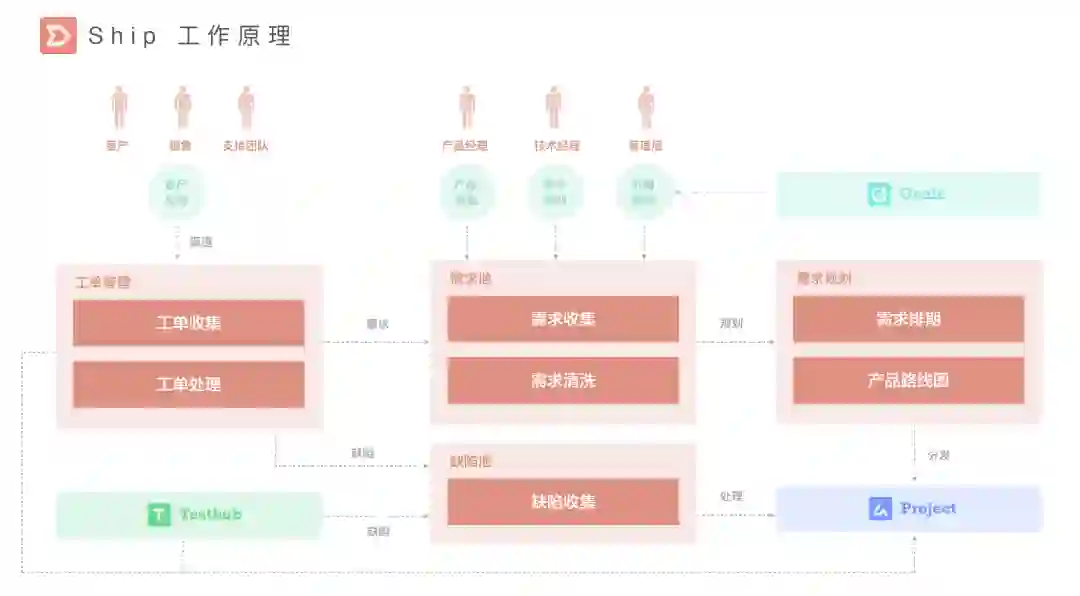 在过去,国内研发团队所使用的研发管理工具主要以产研团队管理为中心,核心解决的是需求价值流中从开发、编码、构建、测试再到发布上线环节的管理,并不能有效解决开发环节以前——工单、需求、产品规划等环节管理问题,使得产研团队“离代码太近,离客户太远”。而 Ship 通过整合客户反馈、捕捉产品洞察、科学规划产品优先级、构建连接所有人的产品路线图,让 PingCode 客户能够将精力聚焦于提升产品竞争力,服务目标客户。