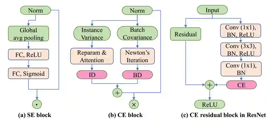 图2. SE,CE的结构图以及CE在残差网络中的实现