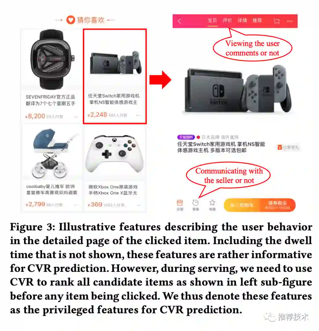 精排:在精排阶段,用户在商品页的行为对CVR的预估非常有用,但是线上服务时是无法获取这类后验特征的。于是在精排CVR预估中,这类特征就是优势特征。