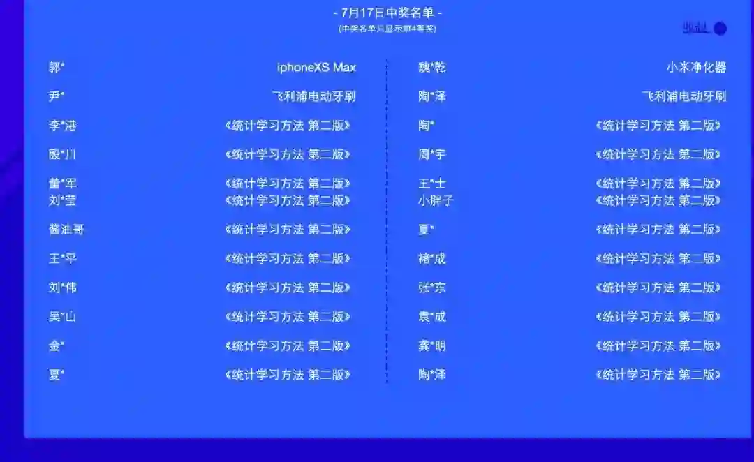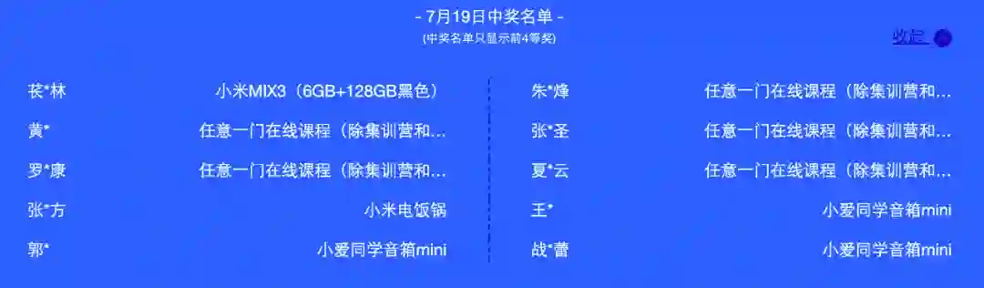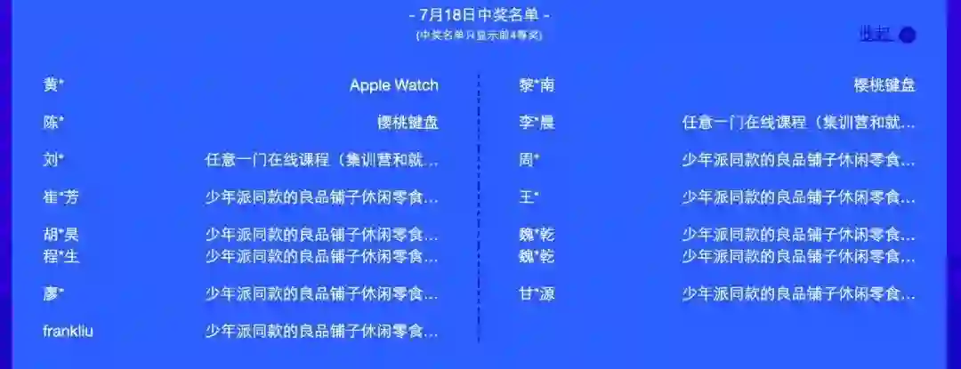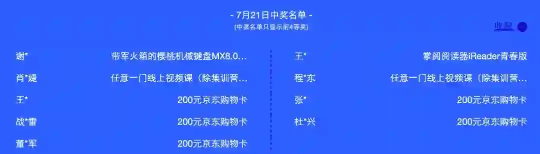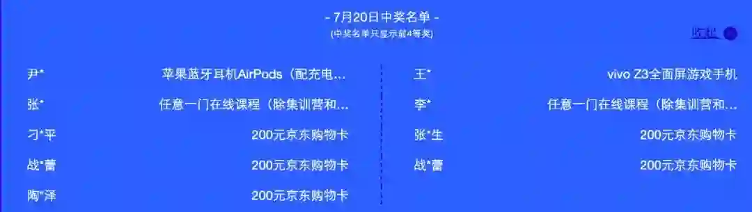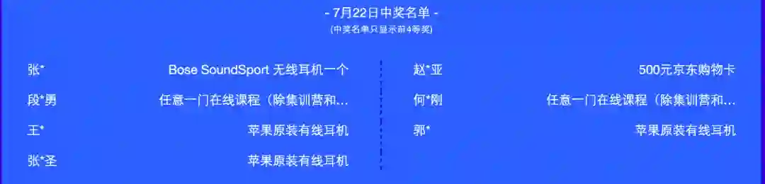 活动期间(7月17日-23日)每日前四等奖获奖名单如下: