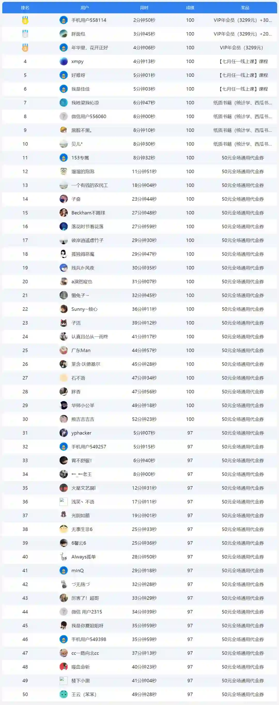 前三名将获得售价3299元的VIP年会员