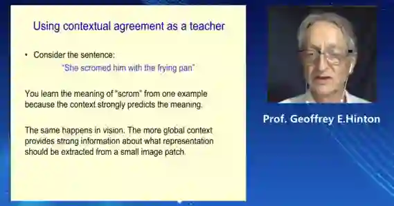 Hinton认为在视觉领域也是如此,同一批图片的上下文表示,可以提供很强的相关语义信息。