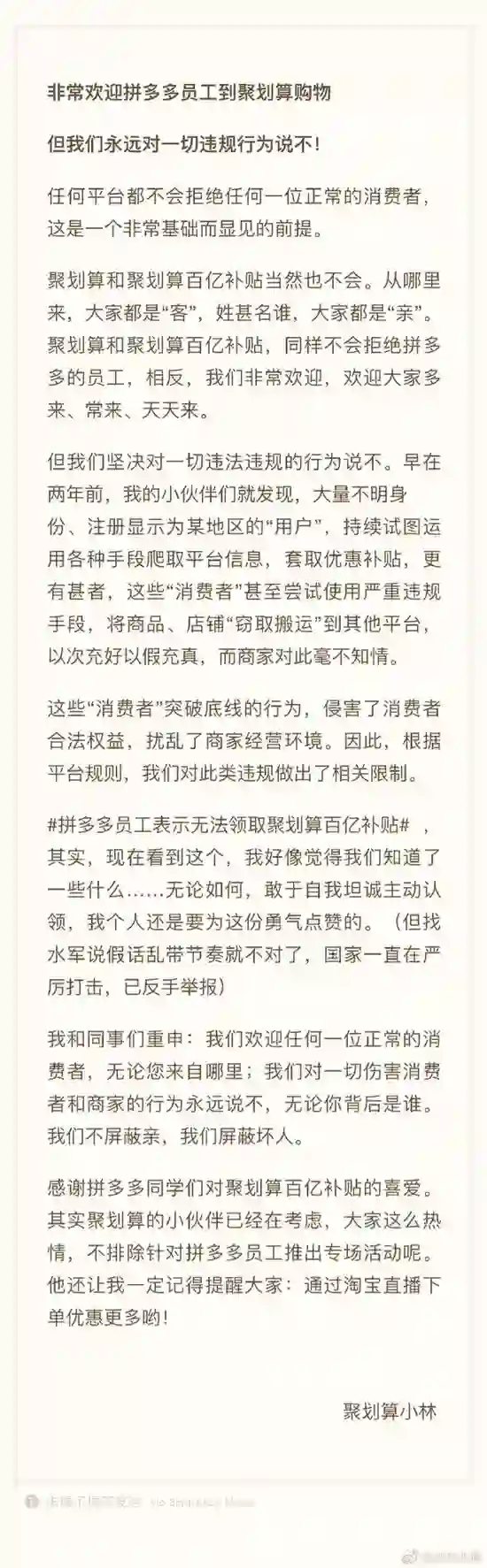 阿里回应“封拼多多员工淘宝账号”:对违规行为说不