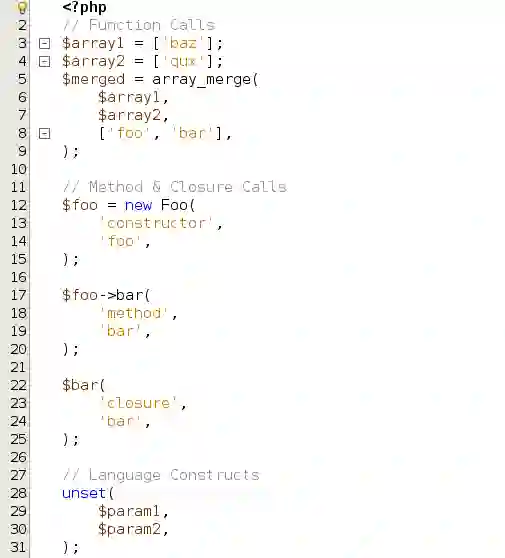 例如,现在在 NetBeans 10 中,使用 PHP 7.3 进行开发时可使用尾后逗号。而对于 PHP 7.2,支持在列表语法中使用尾随逗号。