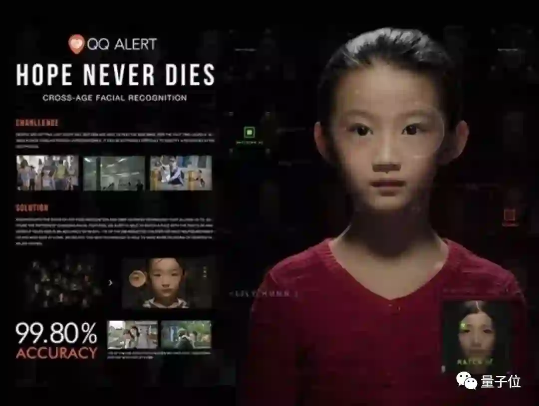 去年2月,利用腾讯优图的“跨年龄人脸识别”技术,腾讯成功通过一张3岁被拐的小朋友照片,在10年后帮助其与家人团聚。