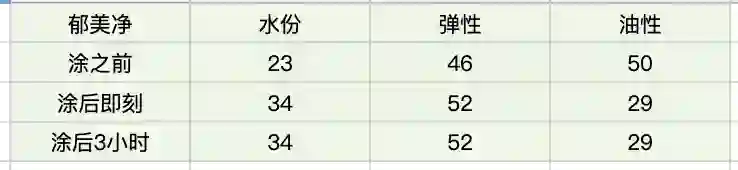 郁美净的鲜奶霜用完之后,肌肤水分得到了很好的提升,即使在三小时后肌肤锁水度依然不错,相比涂抹之前提升了10%!不过油分有所下降。整体封闭性一般,虽然肤感清爽,但需要及时补涂。