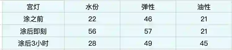 宫灯整体表现非常一般,涂上之后仅仅过了三个小时皮肤水分就下降了不少,而且数据值非常不稳定。如果想要用宫灯保持一天肌肤水润基本上不太可能。关键是,这个味道真的太刺鼻了。真实反馈:夏老师测完之后,鼻炎就开始发作。真诚建议近期鼻炎患者千万别选这款。