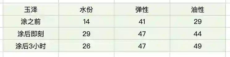 看到保湿数据就明白为啥是凝脂感的皮肤啦。毕竟是小BB用的产品,整体油分含量比较高,封闭性好,能够帮助皮肤锁住水分。如果喜欢皮肤像小孩儿一样紧实的敏感肌UU可以购入!