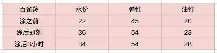 百雀羚的综合补水保湿表现还不错,整体肌肤水分都有所提升,油份也在正常范围内。如果能接受比较古早的香型,用它作为日常保湿涂涂腿也不错。
