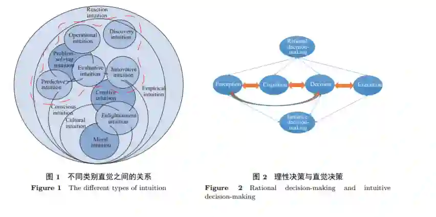 汉语 “直觉” 出自鲁迅《花边文学 · 算账》: “但我直觉的感到, 这恐怕是折了本, 比用庚子赔款来 养成几位有限的学者, 亏累得多了. ” 在我国古代的道家、儒家、佛家均已意识到直觉的存在并提出运 用直觉思维认识世界. 其中, 道家是最先提出并运用直觉思维认识世界的. 道家认为 “道” 是宇宙的本 体, 但 “道” 作为无形无名的绝对, 是不能用概念所认识的, 只能靠直观或体悟 [14] . Pondy [15] 指出, 进 行战略决策时必须同时考虑理性过程与直觉过程. 例如在高速环境中, 通过直觉可以在没有数据或先 例的情况下做出决策 [16] . 在这种环境下, 人类主要面对的挑战是收集信息的时间限制与不稳定环境 本身需要大量数据之间的矛盾, 并且数据往往又是缺乏足够可靠性的. 而直觉的方法可以与先前习得 的经验结合, 并将在决策过程中发挥关键作用 [17] . 在对抗激烈的运动中, 直觉同样发挥着不可替代的作用. 对球类等运动的研究表明, 在竞争激烈、攻防转换迅速的比赛中, 运动员面临巨大压力下, 在对 对手进行准确的预判时, 往往倾向于发挥直觉决策的能力 [18] . 虽然在运动中与企业管理中应用的直 觉场景不同, 但这几类场景具有一定的相似性, 即决策条件与环境变化很快以至于决策者不能用常规 的逻辑推理给出答案 [19] , 而经验丰富的人类专家可以利用有限的信息在有限的时间里做出一个较为 准确的决策. 这些实际案例都启发着我们, 需要探索这一能力产生的机理与实现的架构.