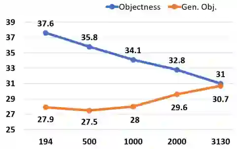 这篇文章证明,通过仅使用一组滤波器来进行目标与背景检测,可以预测通用的物体性得分。这种物体性分数可以简单地与检测对象的分类分数相乘,在性能上只有一个较小的下降。最后,作者表明,可将学习到的物体性泛化至未出现的类,并且性能随着训练目标类的数量而增加。它支持物体性具有普遍性的假设。