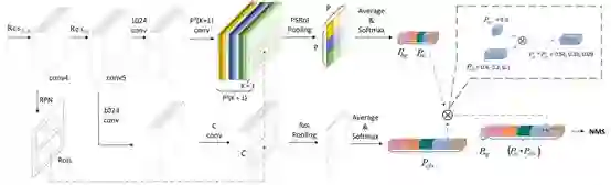 如图2所示,R-FCN-3000使用RPN产生proposals。对于每个超类k有P*P个位置敏感的滤波器。在进行位置敏感的RoIpooling和对预测进行平均之后,本文可以得到网络对于分类和定位的得分。