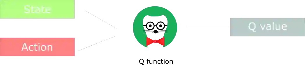 我们可以把 Q 函数视为一个在 Q-table 上滚动的读取器,用于寻找与当前状态关联的行以及与动作关联的列。它会从相匹配的单元格中返回 Q 值。这就是未来奖励的期望。