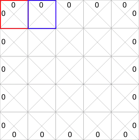 「0」代表不可能的移动(如果你在左上角,你不可能向左移动或者向上移动!)