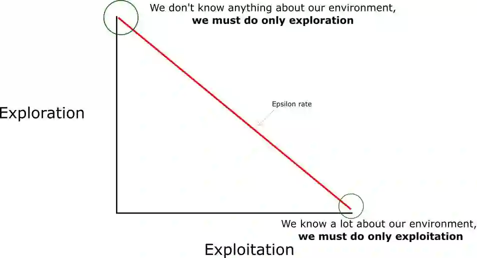 在刚开始训练 Q 函数时,我们必须有一个大的 epsilon。随着智能体对估算出的 Q 值更有把握,我们将逐渐减小 epsilon。
