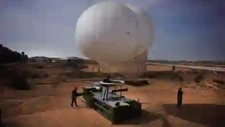 在2014年7—8月加沙边境的冲突中,以色列沿边境部署了13 套Skystar300 系留气球系统(图11)。该气球直径7.7 m,体积100 m3,部署时间仅需要20 min。该系统可以在350 m高度搭载50 kg的载荷,连续工作时间达72 h,抗风能力达到20 m/s。