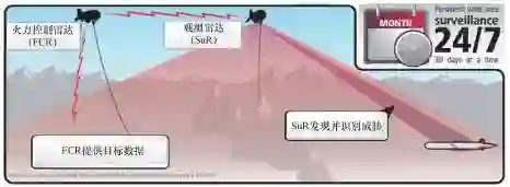 球载监视系统可升空至3000m的高空,相比地面监视系统,受地球曲率影响小,能够进行超地平线探测,消除一般山、海基雷达存在的探测和制导盲区,还能超越山峰限制,探索山谷内的目标。球载监视系统覆盖范围广,当气球升空高度达到3000 m时,对飞行高度50 m的目标,其监视距离可达到255 km,是地面雷达的5.7倍,监视面积达到2.8万km2,是地面雷达的32.5倍。系留气球对巡航导弹、超低空雷达的探测具有明显优势,有较强的侦察能力。