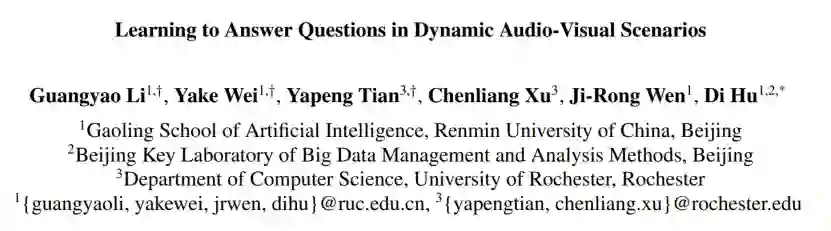 中国人民大学高瓴人工智能学院 GeWu 实验室提出了一种动态视音场景下的空间 - 时序问答模型,让 AI 能像人一样观看和聆听乐器演奏,并对给定的视音问题做出跨模态时空推理。论文已被 CVPR2022 接收并选为 Oral Presentation。