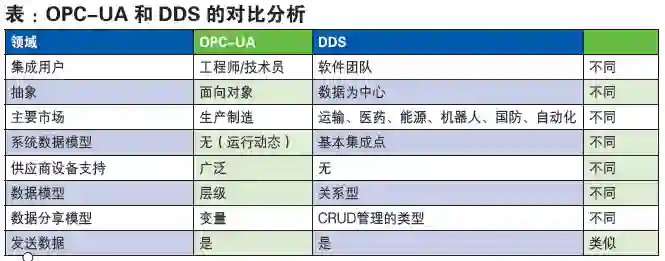 DDS和OPC-UA在很多方面的侧重点都不同。DDS广泛应用于需要复杂分布式软件的行业。OPC-UA的目标是制造业,其中设备互操作性更为重要。