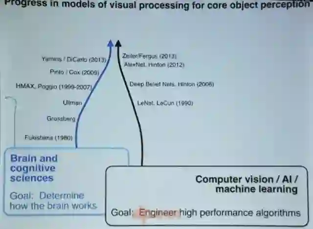这时候的发展就比较有意思,虽然大脑和认知科学与计算机视觉的研究目标不同,但是他们做的事情开始有所汇合,都是想办法建立具有尽量高的性能的模型。