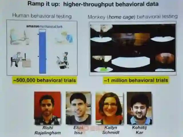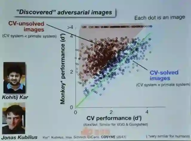 为了继续深入研究、解析其中的原理,他们用AMT众包和猴子收集了更多数据, 这样就可以观察非常细粒度的数据,针对每一副正确识别或者没能正确识别的图像,从行为的角度进行分析。