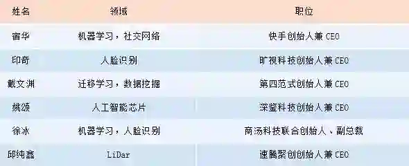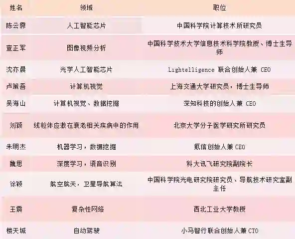 除了以上提及的学界人工智能领域研究人员,业界也有诸多人工智能界领军人物入选,名单如下: