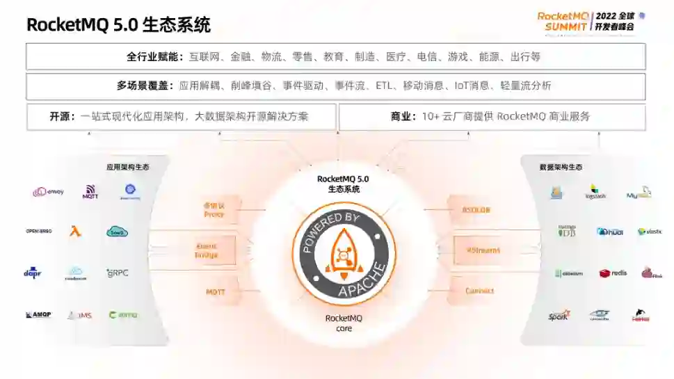 本篇文章从大规模弹性、集成易用性、可观测性和稳定性 SLA 等方面介绍了 RocketMQ 5.0 的演进和方向,同时针对性介绍了阿里云消息队列 RocketMQ 5.0 在这些方面的实践和落地。阿里云消息队列 RocketMQ 5.0 目前已正式商业化,助力企业互联网架构演进实现降本增效,相比上一代降价 50%。在功能和性能层面,RocketMQ 5.0 商业化版本提供新一代售卖实例,首先在超大规模弹性方面,可以实现 0~100 万 TPS 超大规模伸缩;其次在可观测性上,支持全链路调用链集成和自定义监控指标集成;最后在集成方面,全面支持原生 Java/C++/C#/Go SDK,更加稳定。
