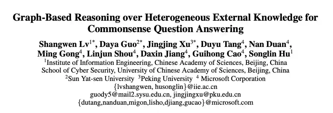 在常识问答领域,中国科学院Shangwen Lv等人在论文中,使用常识知识库ConceptNet和维基的 IR 库挖掘了一些证据知识,并通过 GCN将这些知识传递。另一方面,基于 XLNet 的推理模块解码问题、选择以及找到的证据,已获得联合表示。该方法获得的 F1 分数为 75.3%,目前排名第 2 !