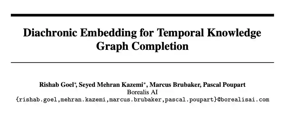 加拿大皇家银行旗下人工智能研究所 Borealis AI 的研究者 Rishab Goel等人提出了SimplE模型的扩展版本——DE-SimplE,可通过历时实体嵌入来支持知识图谱的时间维度,其中实体维度 D 外的 𝛾d 维度可以捕获时间特征,而(1-𝛾)d 维度则能够捕获静态的知识图谱特征。