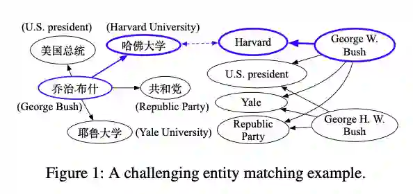 不同的知识图谱都有他们自己的实体建模的模式,换句话说,不同的属性集合可能只有部分重叠,甚至URLs完全不重叠。例如在Wikidata中Berlin的URL是https://www.wikidata.org/entity/Q64,而DBpedia中Berlin的URL是http://dbpedia.org/resource/Berlin。