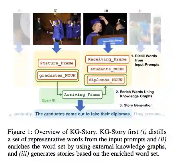 科罗拉多大学、国立中央研究院、宾夕法尼亚州立大学等机构联合发表的论文定义了一个“看图讲故事”的框架——KG-Story,该框架能够基于连续的图片,生成一个连贯的文本描述。此外,该框架采用知识图谱进行自我丰富,有助于图像场景的理解和文本生成。