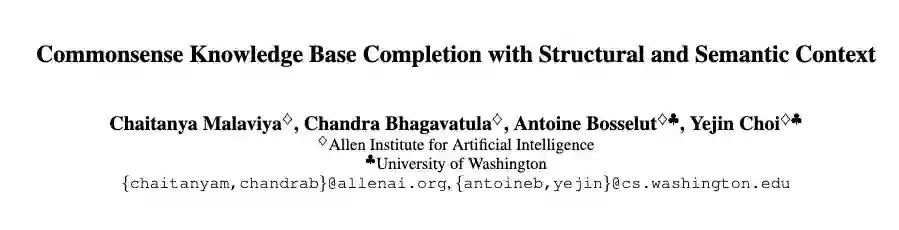 艾伦人工智能研究所的研究者Chaitanya Malaviya 等人在论文《Commonsense Knowledge Base Completion with Structural and Semantic Context》中展示了,例如 DistMult 或 ConvE 等传统的知识图谱嵌入算法,由于知识图谱的稀疏性( 例如数据集FB15K-237的密度大概是1.2e-3,平均入度为 17;而 ATOMIC的密度为 9e-6 ,平均入度为2.25),得到的结果并不好。