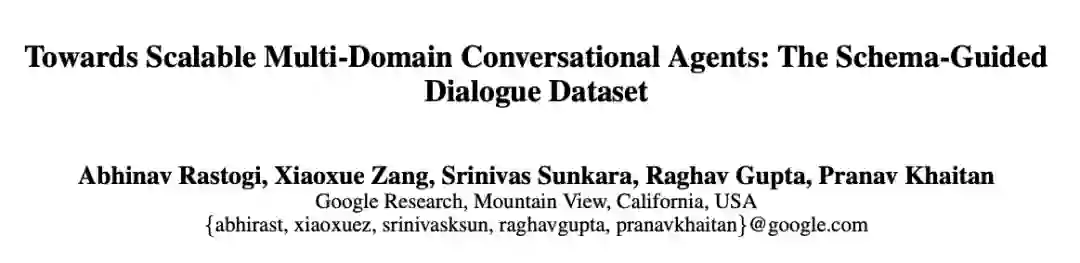 谷歌软件工程师Abhinav Rastogi等在论文中,提出了Schema-Guided Dialogue (SGD)数据集。迄今为止,SGD数据集是最大的多领域数据集,拥有 16个不同领域超过 1.6万个对话。SGD数据集中的数据没有统一的格式,16个领域的数据从 Freebase获取,各自都有自己的格式表述。