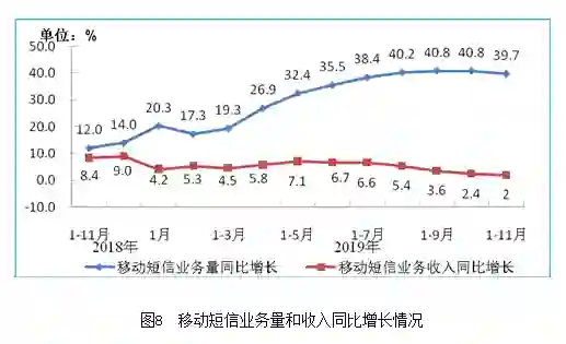 即使是很多人早已没有了发短信习惯,在2019年1-11月期间,国内移动短信业务营收依然达到了358亿元,同比增长2%,这是来自企业业务的强势增长。