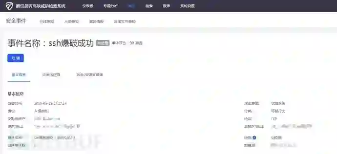 本周腾讯安全服务中心接到客户求助,客户部署的腾讯御界高级威胁检测系统发现SSH服务失陷感知信息,该公司安全管理人员及时联络腾讯安全专家协助分析威胁来源。