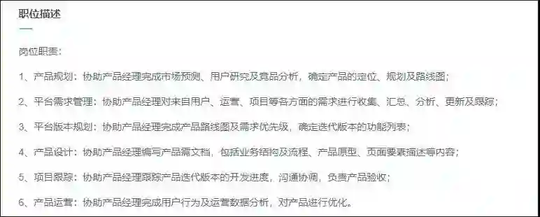 比如,这是Boss直聘上一份相对完备的产品助理的JD: