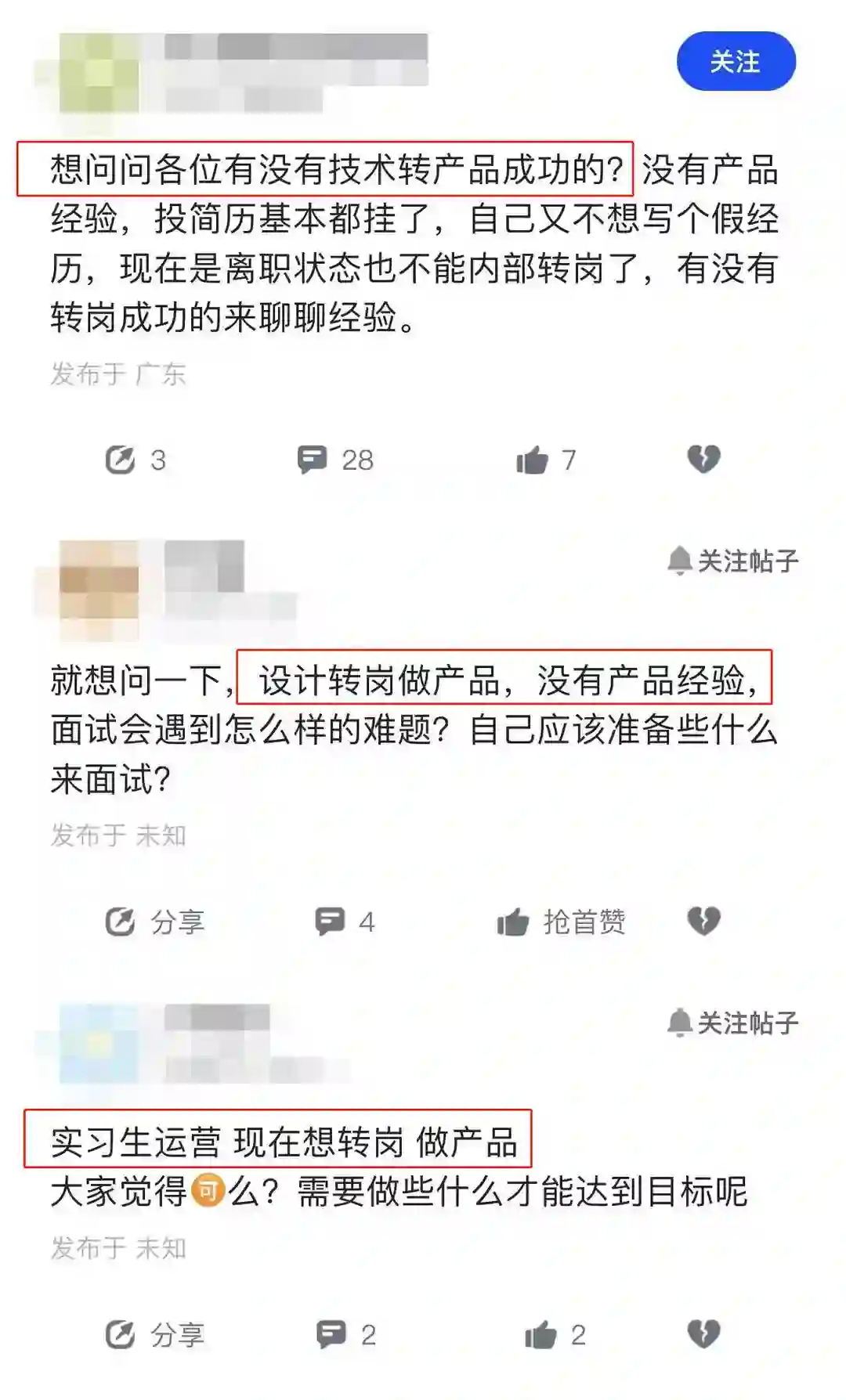 对于转岗产品的人来说,没有相关的产品工作经验,是一个劣势。