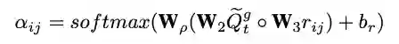 基于问题新表示Qgt的引导,计算场景图中每个关系的注意力: