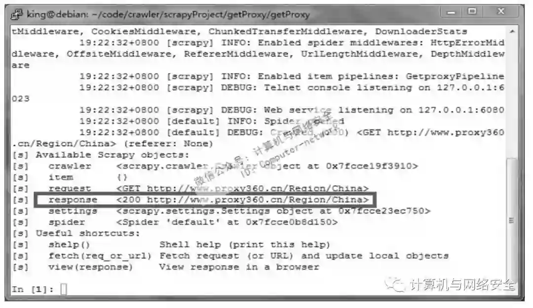 再回到getProxy项目的目录下,使用scrapy shell测试如何获取有效数据。执行命令: