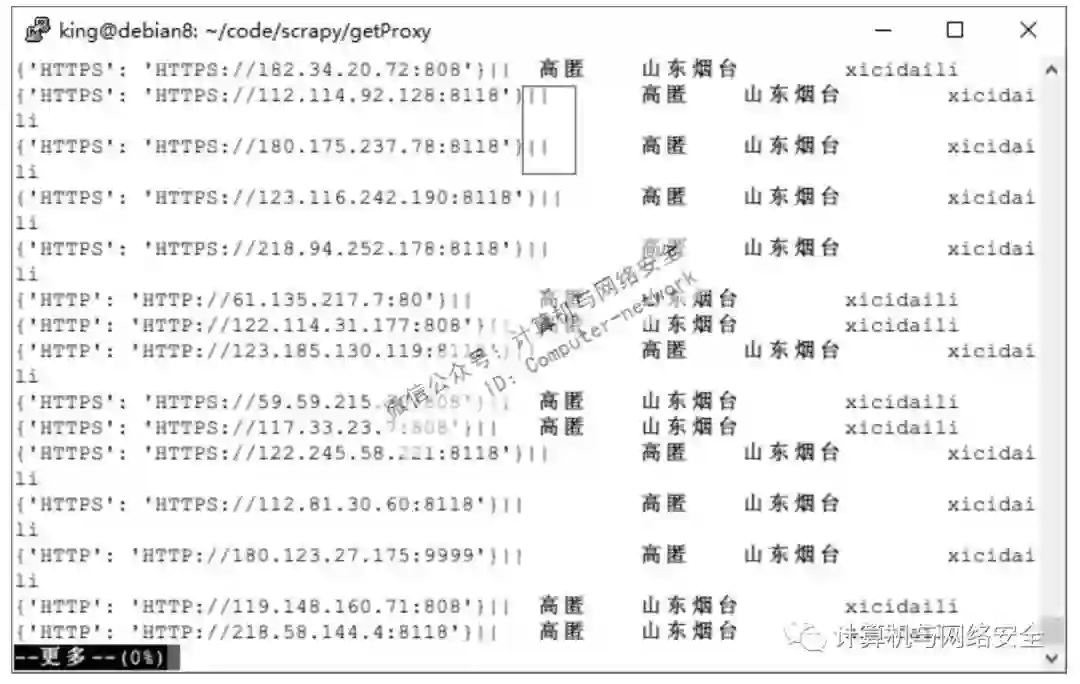 按照一个Spider的思路,得到的proxy数据不够多,则可以在www.xicidaili.com中获取代理补足。到项目getProxy目录下,执行命令: